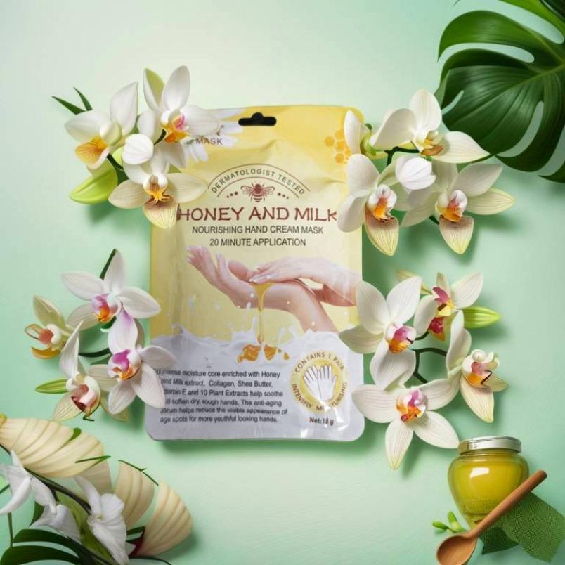 Honey & Milk hand mask is made with milk extract and honey extract, providing a delicate and smooth texture that quickly forms a film to effectively slough off dead skin cells from hands. It also moisturizes and nourishes the skin, improve dryness and dehydration issues to leave hands feeling soft and smooth.