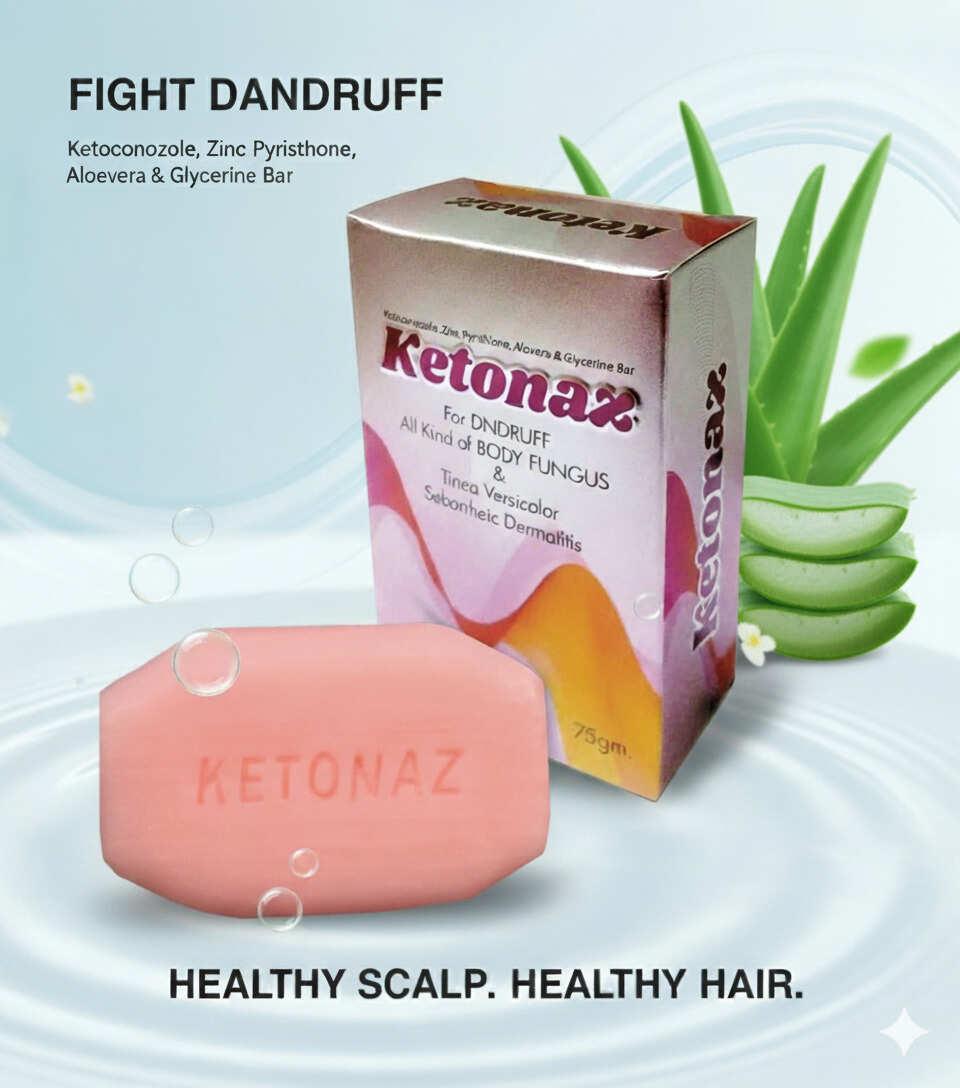 Ketonaz is more than just a soap; it's a powerful therapeutic bar meticulously formulated to combat common skin and scalp concerns. Infused with a potent blend of Ketoconazole, Zinc Pyrithione, Aloevera, and Glycerine, this bar offers a multi-action approach to target dandruff, various body fungi, Tinea Versicolor, and Seborrheic Dermatitis.